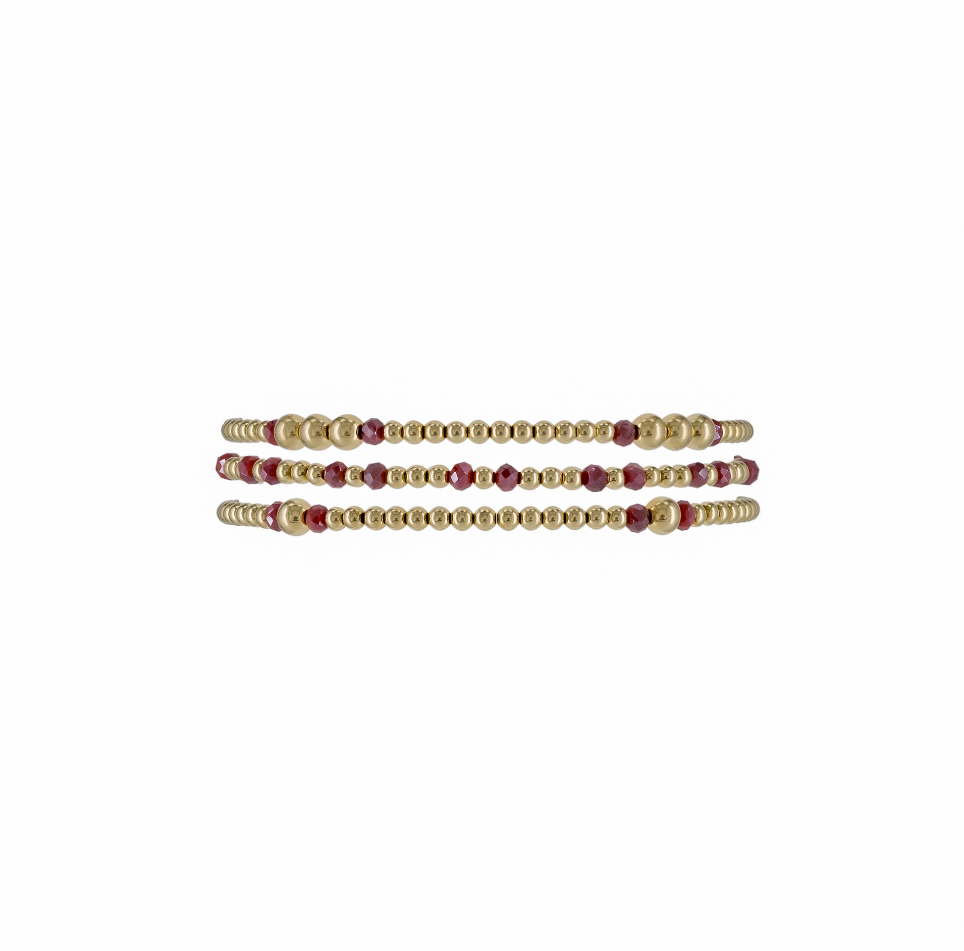 Bracelet 3: 2.5mm and 4mm Gold filled beads with Burgundy crystals