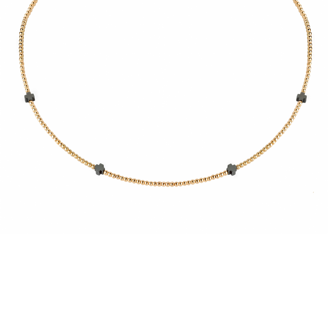 15" 2mm Gold Filled Beaded Choker with 4 hematite cross