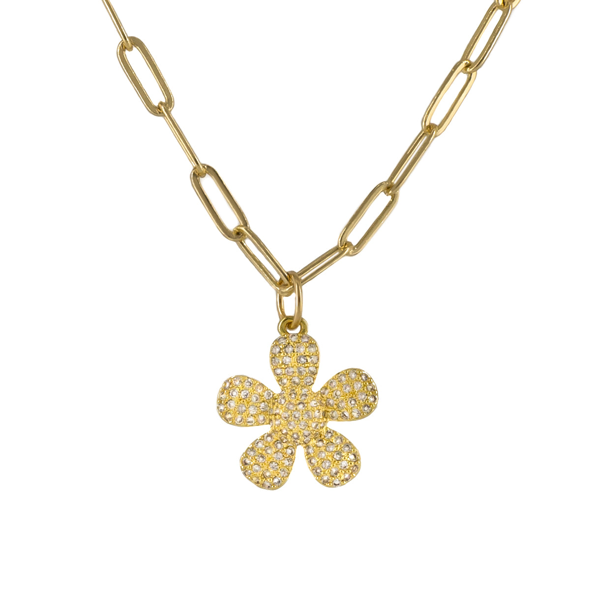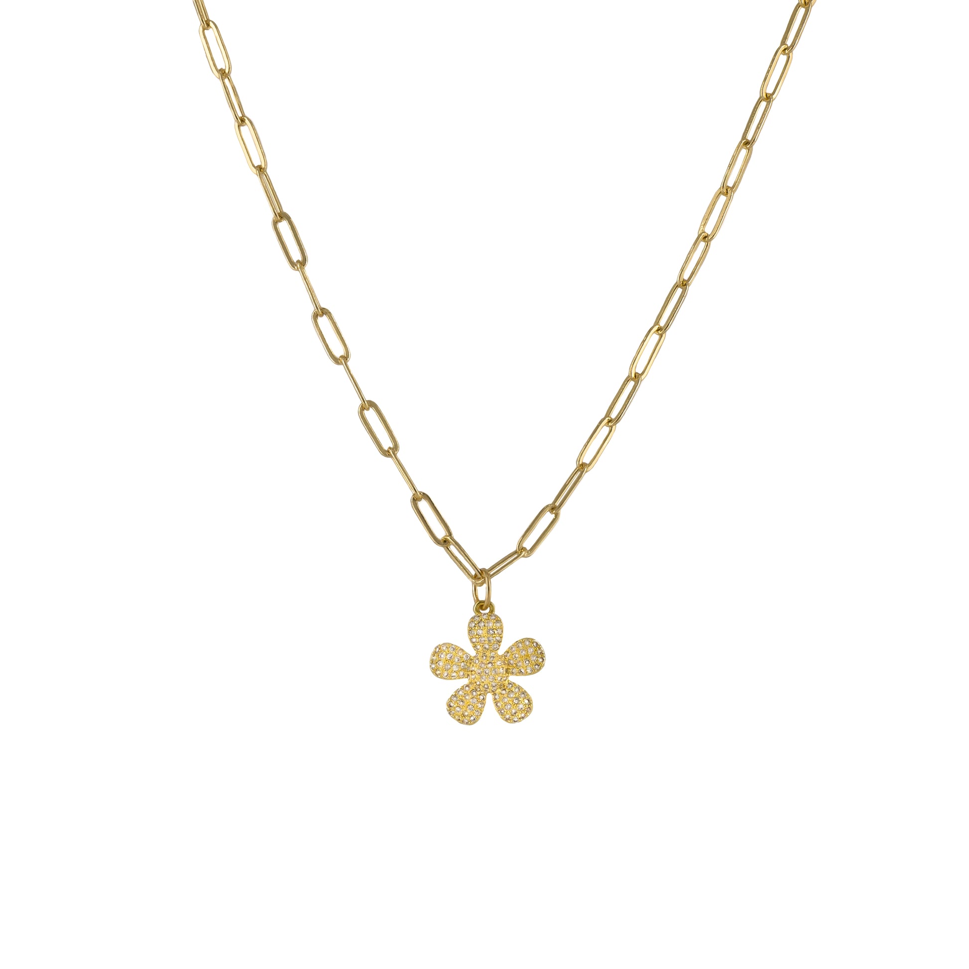 15mm Crystal golden flower in a 16" gold filled chain.