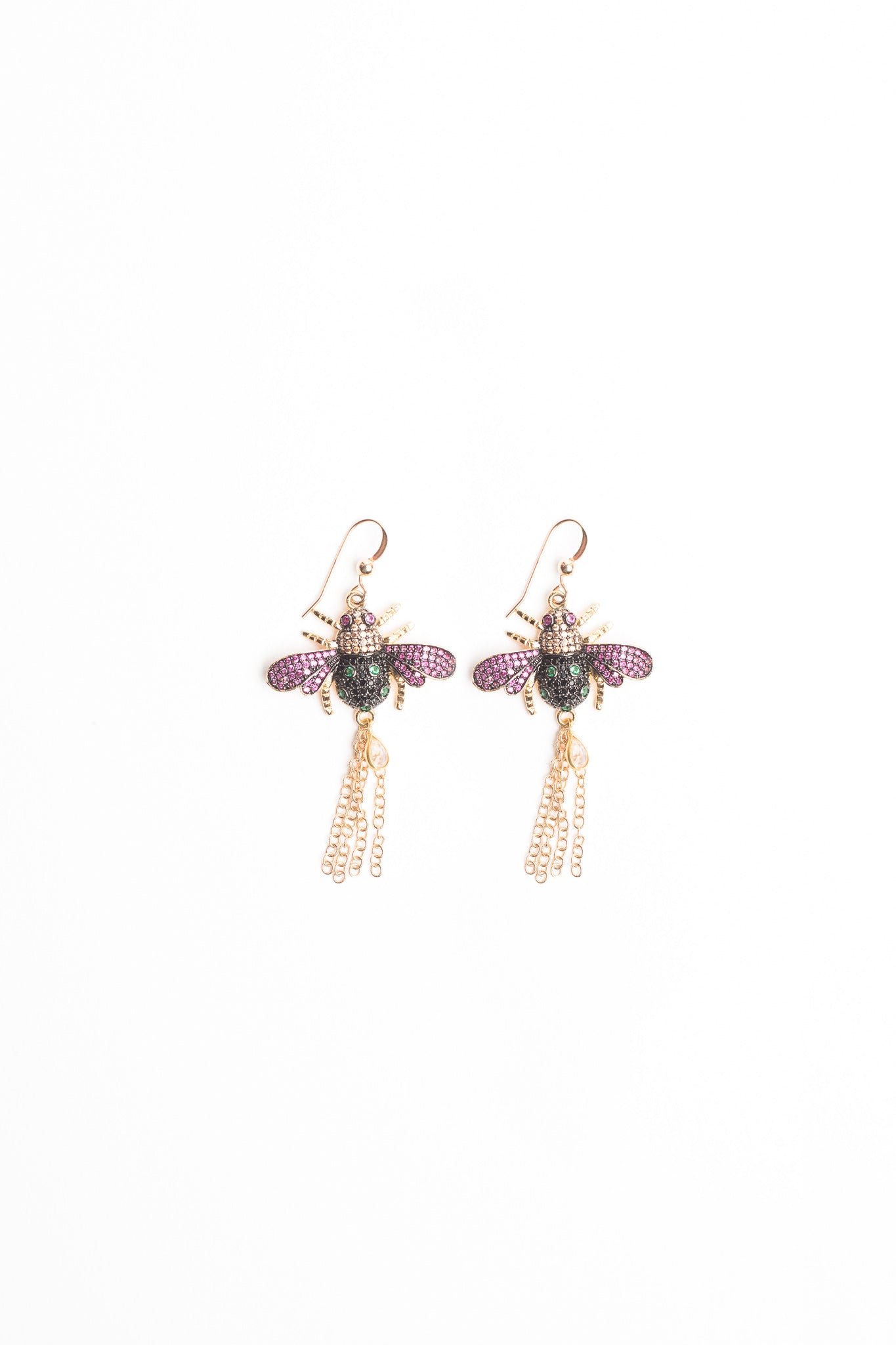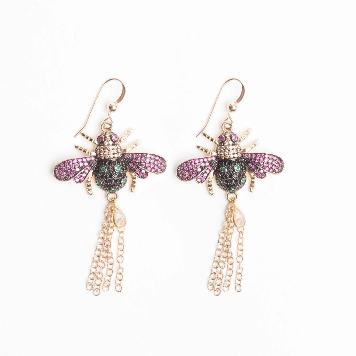 Multi Colored Zirconia Dragonfly Earrings with a Gold filled Chain accent. hay 3 pares y cuesta 85dll