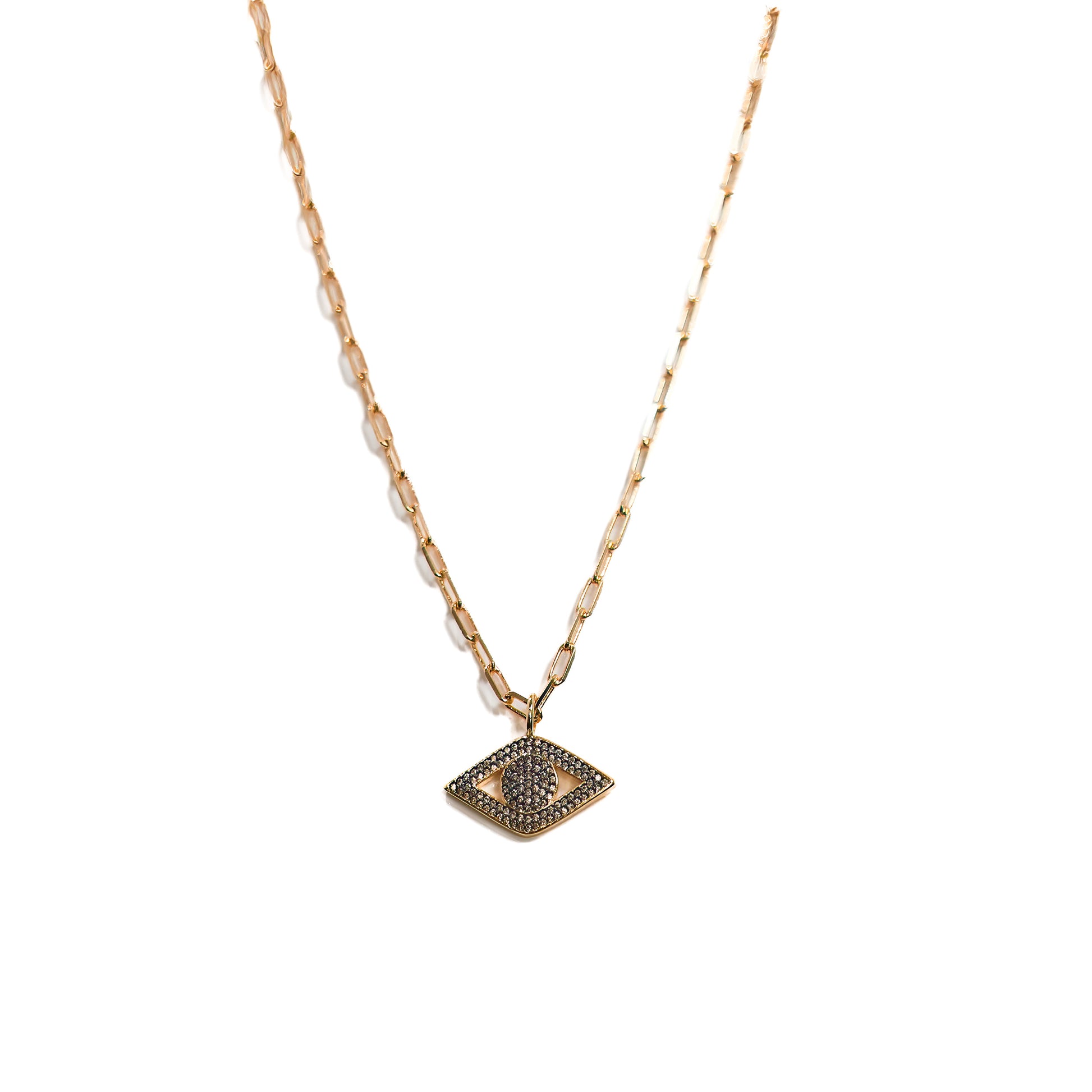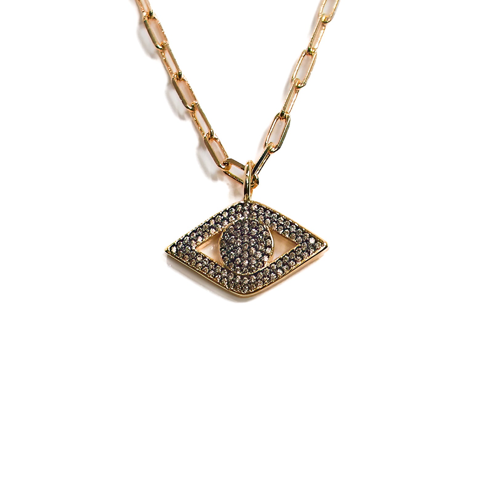 Gold plated evil eye pendant in a 17" gold filled chain.