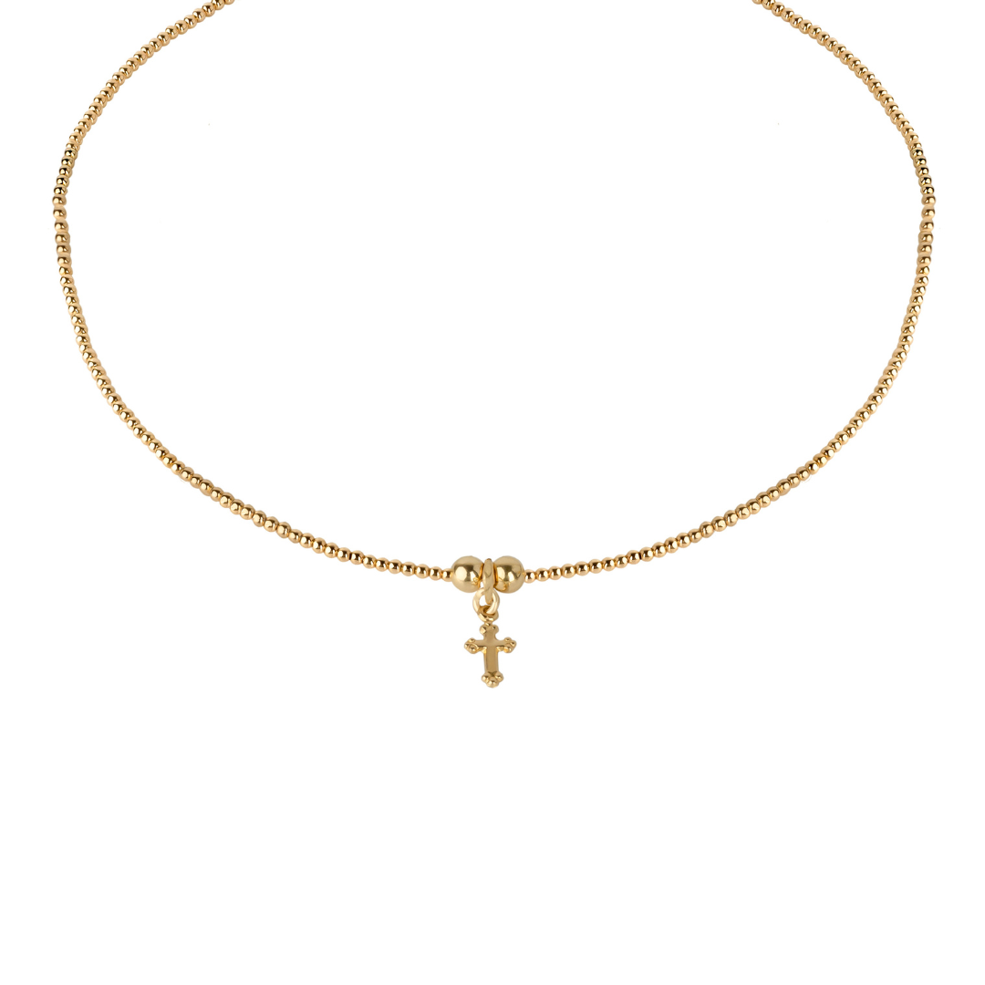 15" 2mm Gold Filled Beaded Choker with 2mm gold cross
