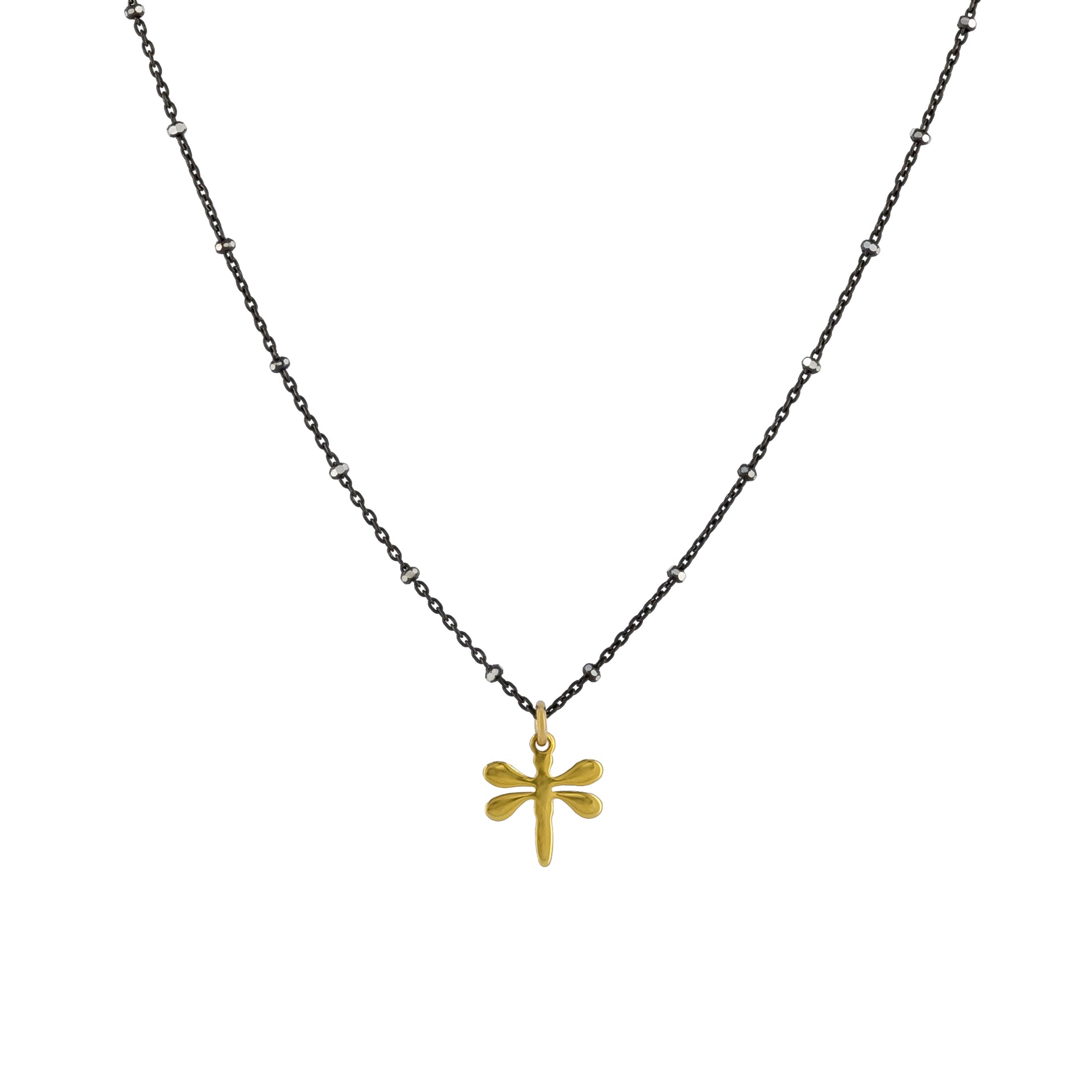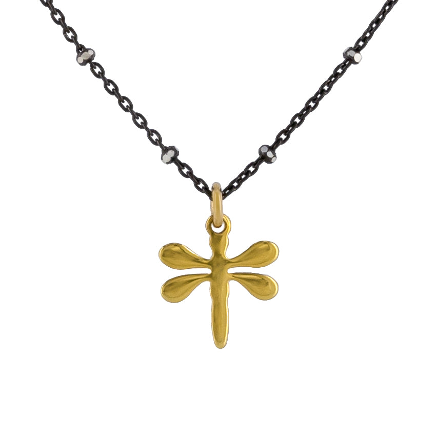 Gold filled dragonfly pendant in a 15mm black oxidized rhodium real 925 sterling silver chain.