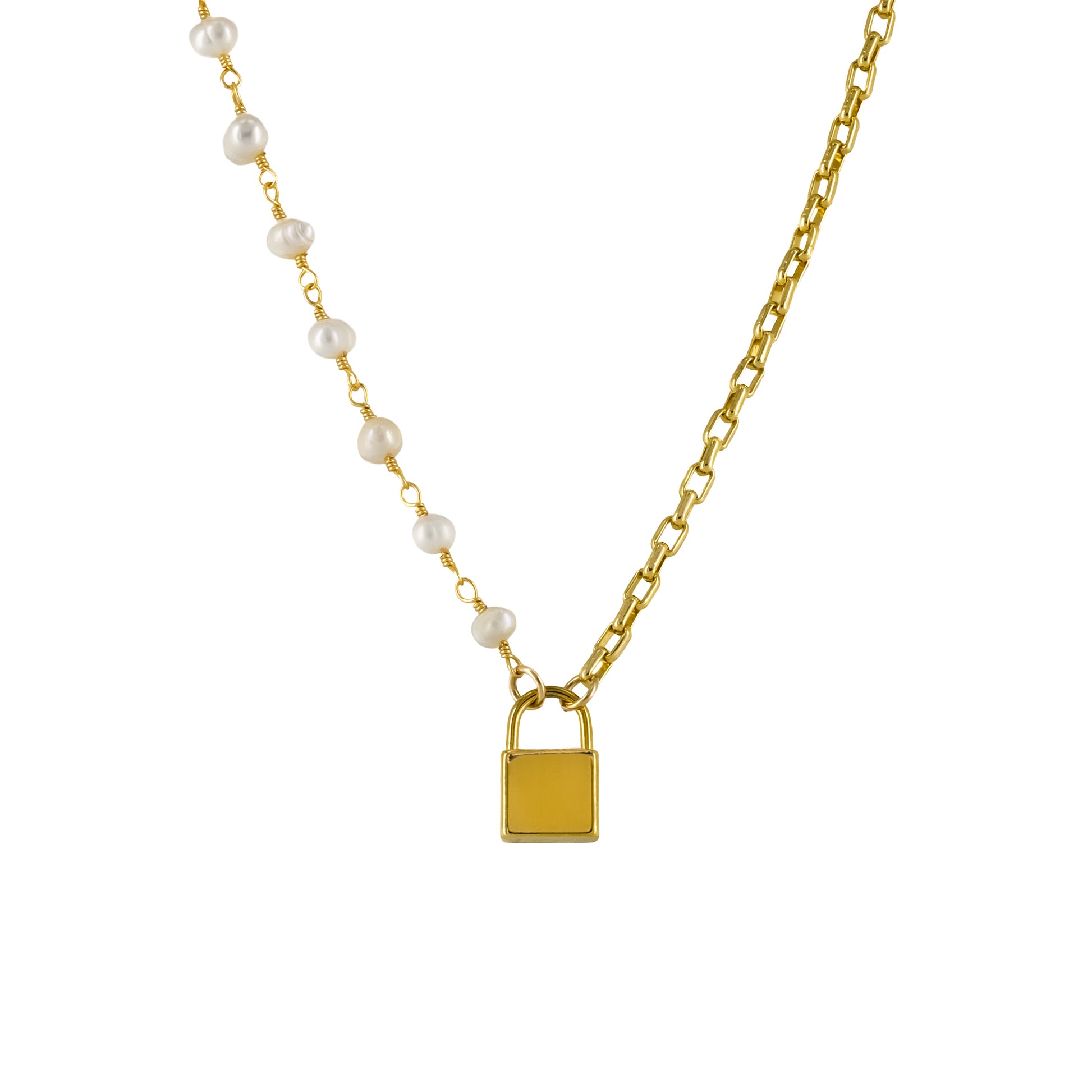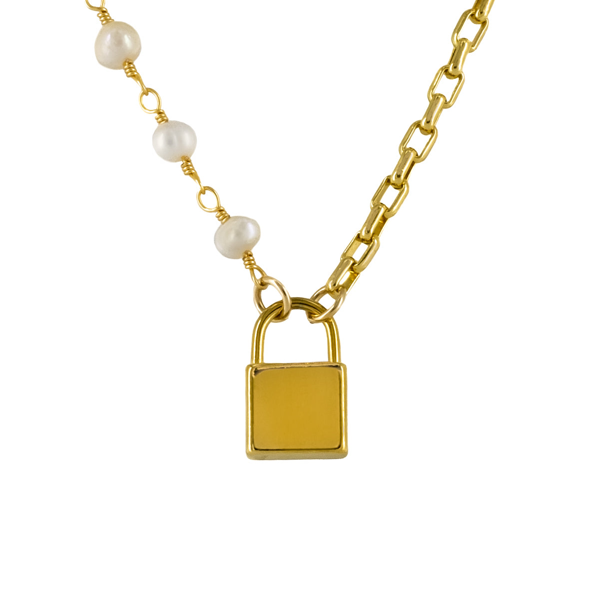 15mm Gold filled locket in a gold filled and water pearl chain.