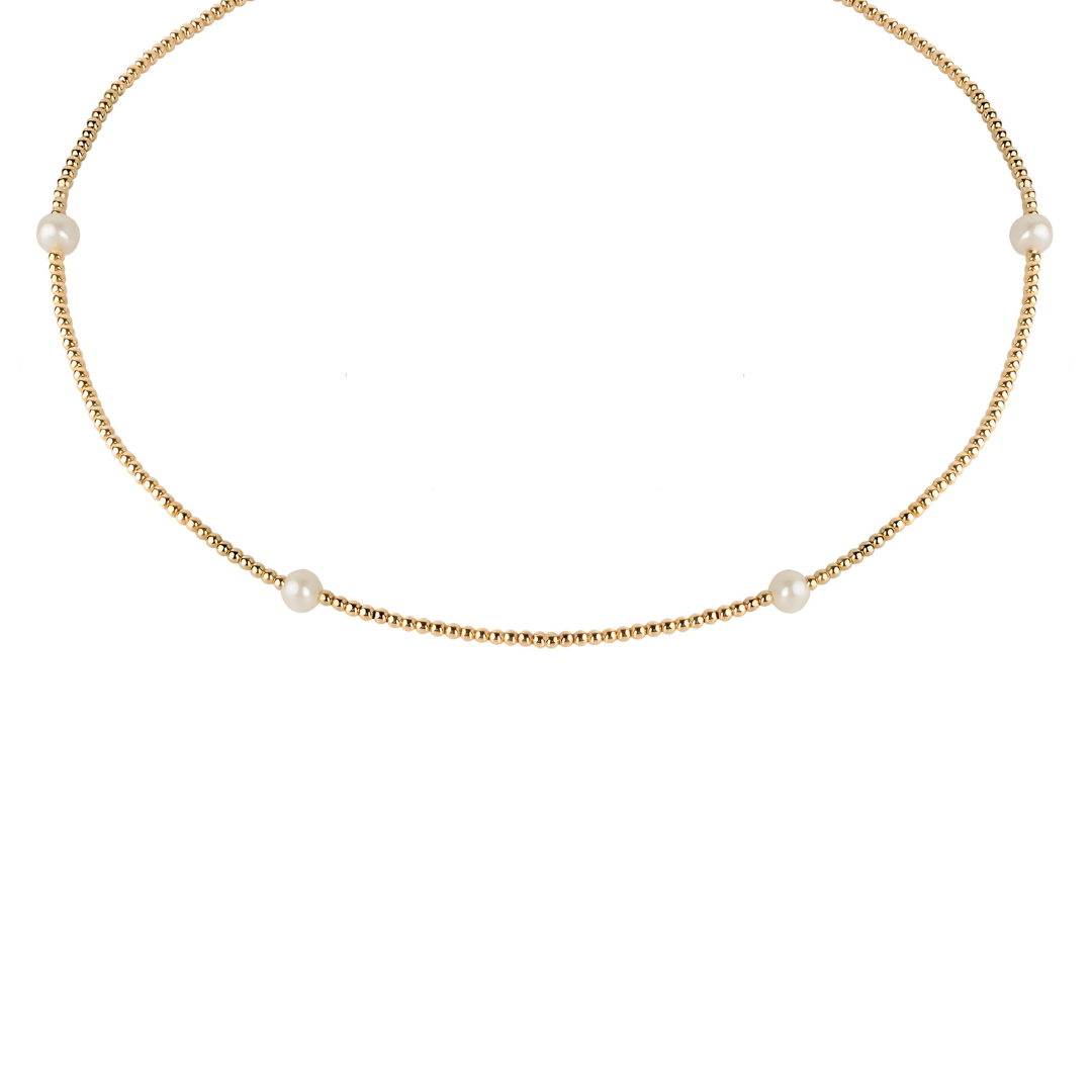 15" 2.5mm Gold Filled Beaded Choker with 4 water fresh pearls