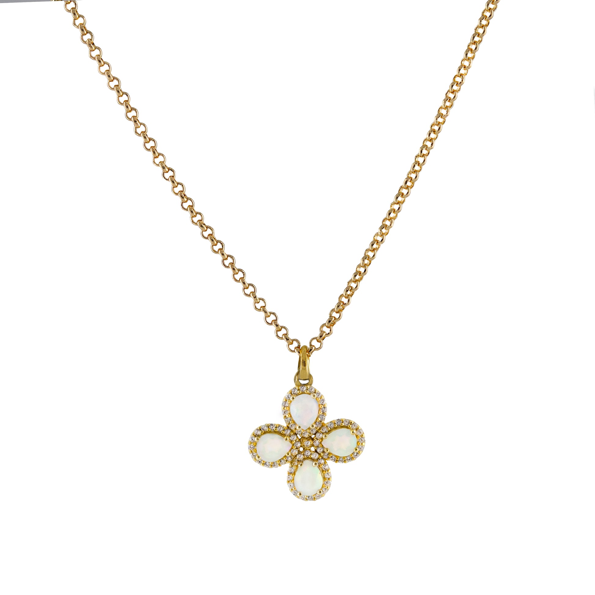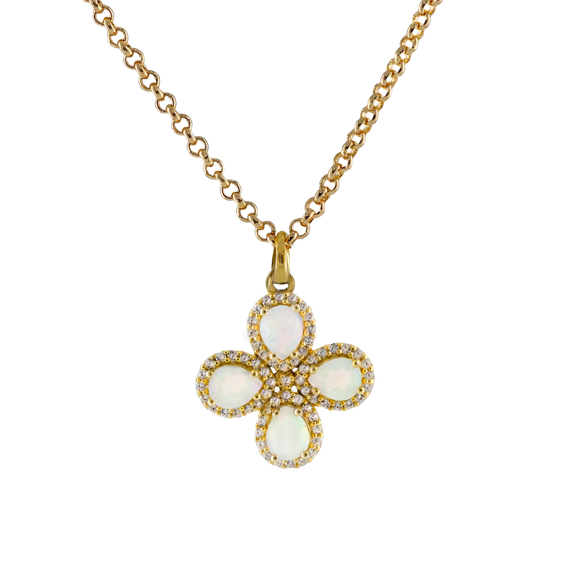 17mm Silver gold plated opal and zirconia pendant with a 16" gold filled chain.