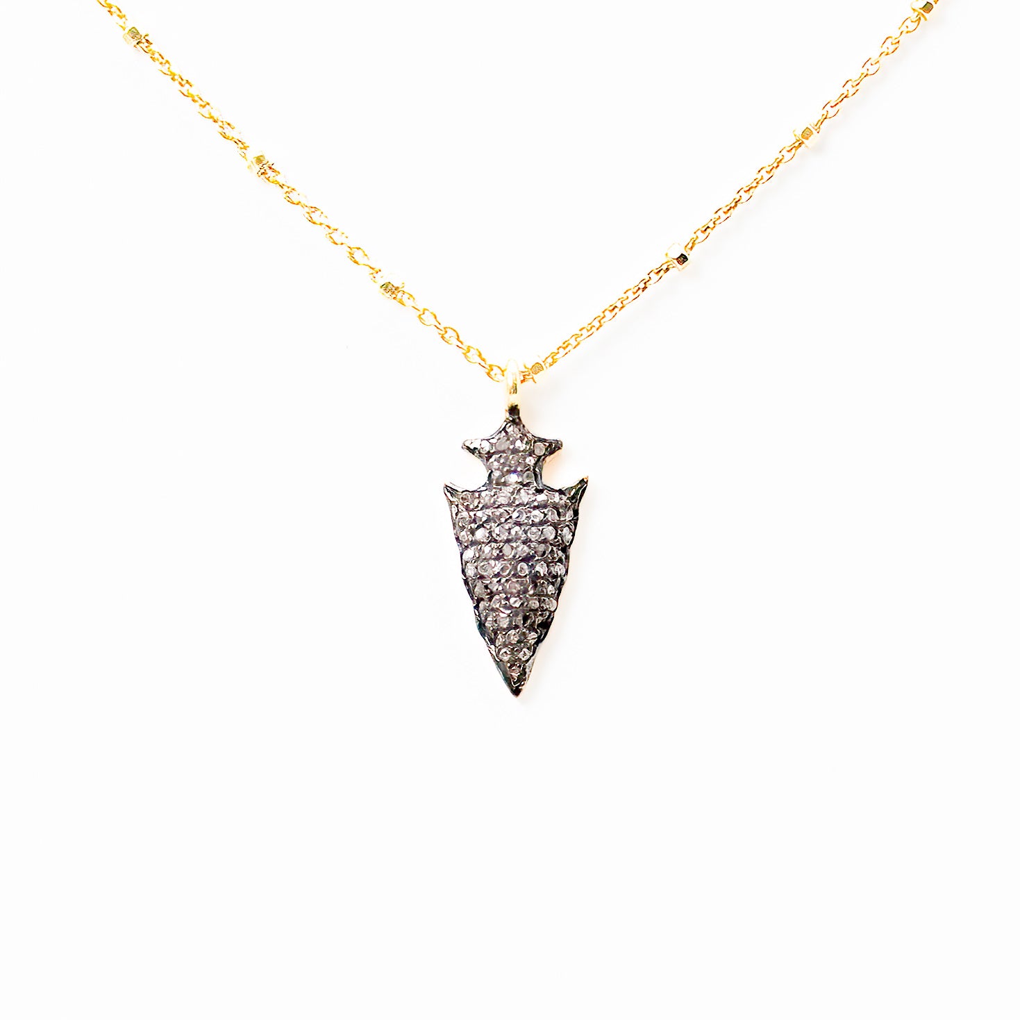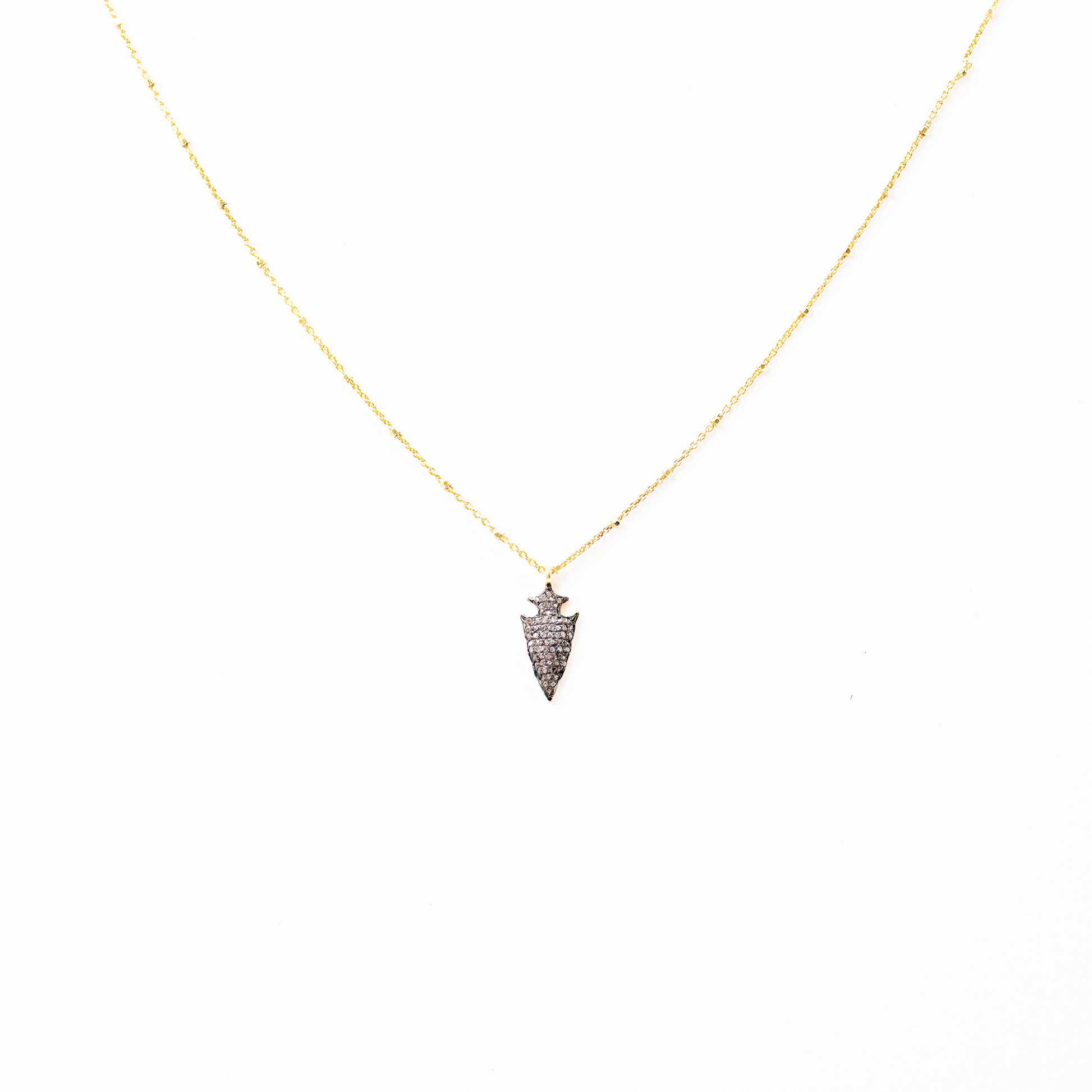 2cm long x 1cm wide silver gold plated spearhead with pave diamonds in a 16" gold filled chain.