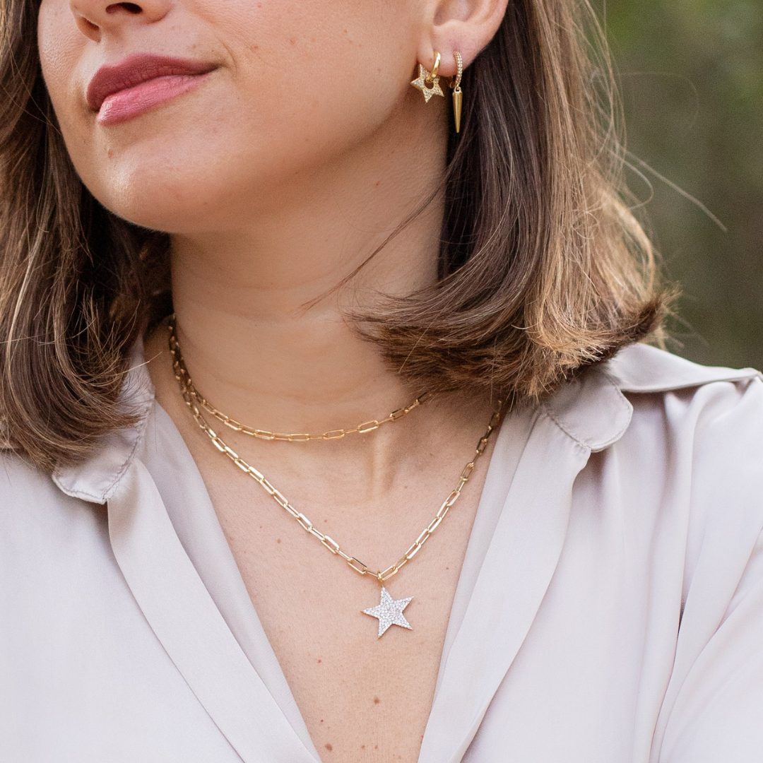 14K Gold filled cubic zirconia star pendant in a 16" gold filled chain.
